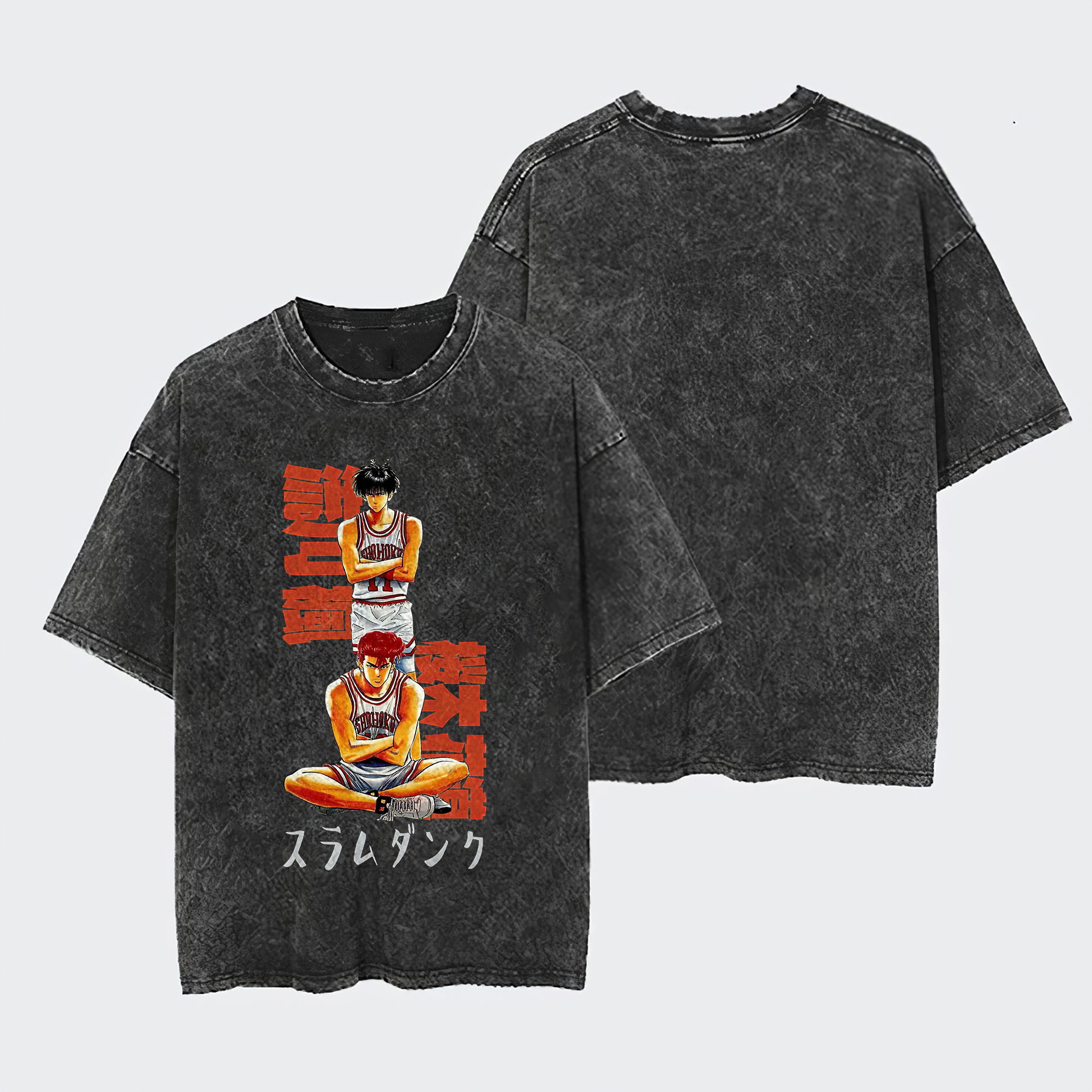 Slam Dunk Sakuragi Hanamichi And Rukawa Kaede Printed Washed T-Shirt- Unisex